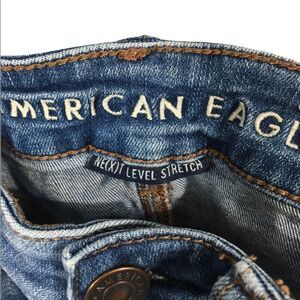 Tags- AEO American Eagle outfitters high rise jagging next level stretch distressed destroyed flex whiskered denim jeans trendy