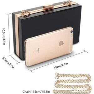 *This transparent box clutch bag has professional size as 7.1" x 4.1" x 2.2" and weighs only about 0.88 lbs, this delicate interior can accommodate some phones with screens under 6 inches and even your sunglasses, lipstick and more items.