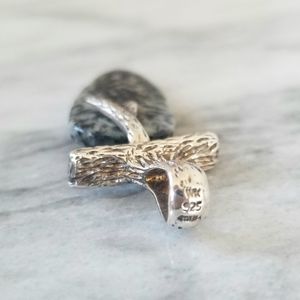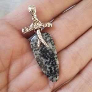 Whitney Kelly (WK) 925 sterling silver branch textured Pendant with Gray and Black speckled teardrop dangle pendant.