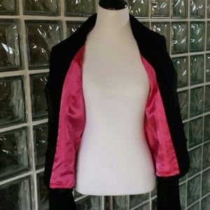 Super cute blazer fully lined in hot pink with leatherette trim!