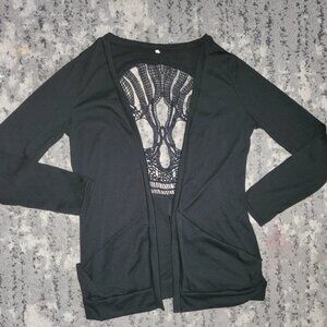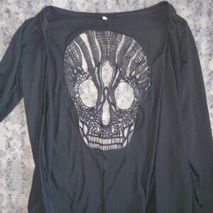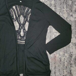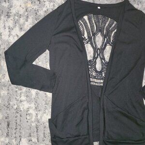 WLLW Women's Long Sleeve Open Front Back Cut Out Skull Cardigan Size S