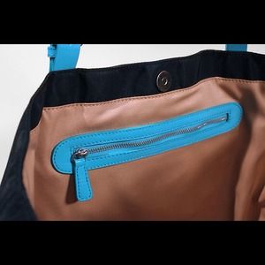Leather and ballistic nylon. The zipper expands the bag height. Lined with open and zipper pockets. Italian hardware and leather.