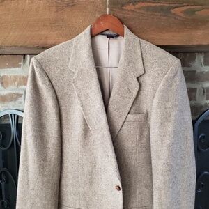 WM. F. Farah 42L Blazer with leather buttons. 100% wool tweed.