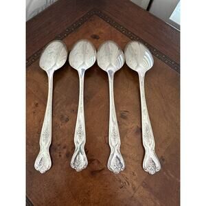 WM Rogers Extra Plate Inspiration Magnolia Silverplate Set of 4 Dinner Spoons
