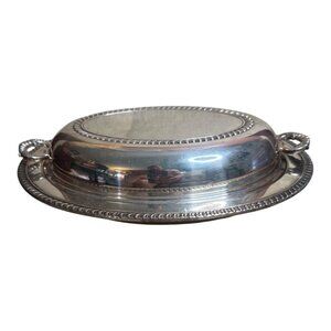 Add a touch of elegance to your dining table with this beautiful WM Rogers silver plated copper oval serving bowl!