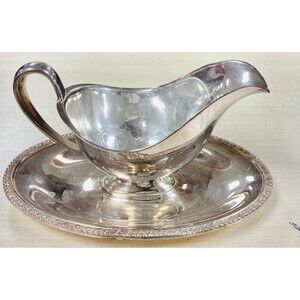 Wm. Rogers Silver Plate Gravy/Sauce Boat With Attached Tray, Avon 3613