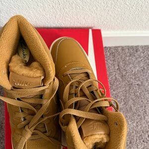 Step up your style with these Nike high-top sneakers in a versatile tan color. Brand new shoes. Never been worn. All sales final.
