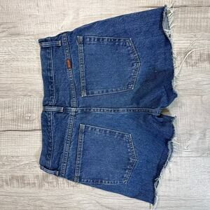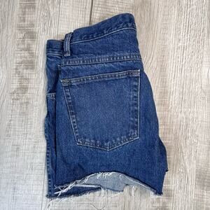 Women's High Rise Cut of Denim Dark Wash Jean Short by Rustler, US Size 33x30, Blue, Non - Stretchy, Casual Shorts. Dark Wash. 5 Pockets Styling, Belt Loops. Button & Zip Closure. Best with tanks tops or t-shirts. Flat Front and Comfortable