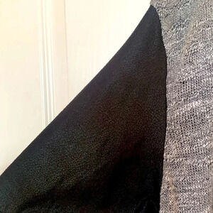 Womens Monrow grey knit buttonless shawl collar cardigan with faux leather black short sleeves I think it’s a size medium but really could fit anyone within reason. Great over a T-shirt or tank. Thin knit in excellent condition