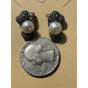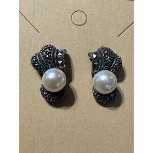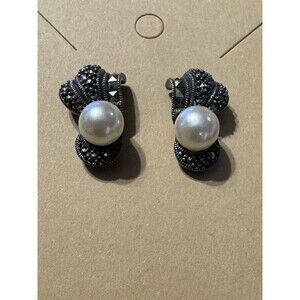 The product is a pair of vintage Judith Jack faux pearl stud earrings. These earrings feature white faux pearls set in a classic stud style, perfect for adding a touch of elegance to any outfit. Designed for the lobe, they are a timeless addition to any jewelry collection, making them a versatile and stylish choice for everyday wear or special occasions.