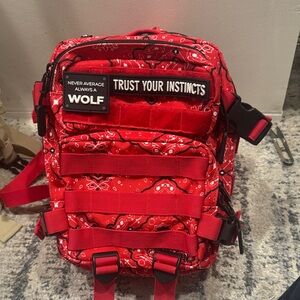 Wolfpak mini backpack -Bold red bandana print with multiple pockets . Ideal for daily adventures or the gym