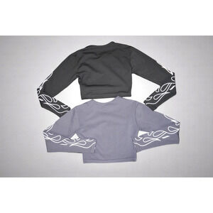 WOLVES Club Flame Sleeve Crop Top – Small – Black & Charcoal Gray – Limited