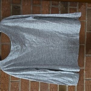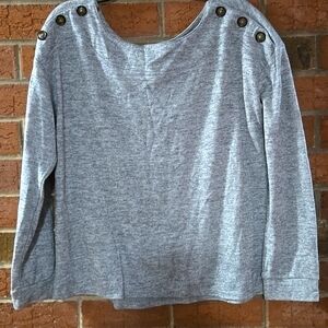 WOMAN GRAY LONG SLEEVE SWEATER W BROWN SHOULDER BUTTONS ON EACH SIDE CABLE&GAUGE BAG 29