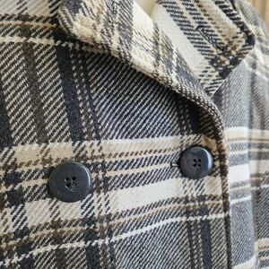 WOMAN WITHIN 30W 4X Gray Black Plaid Wool Pea Coat Cream Brown Plaid Plus Size