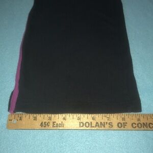 WOMAN WITHIN stretch cotton side stripe boot cut pants black with magenta stripe elastic waistband, soft knit, hem slits at bottom.