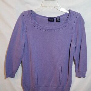 WOMANS 3/4 SLEEVE PULLOVER SWEATER. MEDIUM. LAVENDAR. %55 ACRYLIC & %45 COTTON.