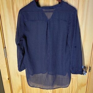 WOMANS DRESSY NAVY BLUE SHEER POLKA DOT HIGH LOW TOP SIZE MEDIUM