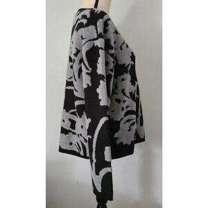 WOMAN'S MAGASCHONI FLORAL WOOL BLEND SWEATER BLACK/GRAY LOOSE FIT SIZE LARGE