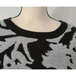 WOMAN'S MAGASCHONI FLORAL WOOL BLEND SWEATER BLACK/GRAY LOOSE FIT SIZE LARGE