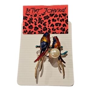 WOMAN'S Multi-Color Enamel Pearl Birds Betsey Johnson Charm Animal Brooch Pin