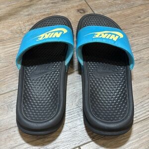 WOMAN’S NIKE BENASSI SLIDES TURQUOISE TEAL YELLOW & BLACK SIZE 11
