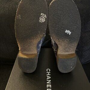 WOMEN 100% AUTHENTIC LACEUP PRINTED SUEDE CALFSKIN CHANEL WHITE/NAVY BLUE BOOTS