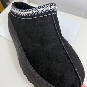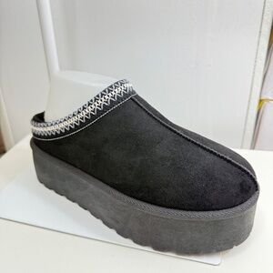 WOMEN BLACK FUR PLATFORM SLIPPERS 2078