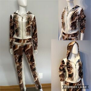WOMEN PLUS SIZE VELOUR TRACKSUIT SET JACKET/PANTS HOOD FLORAL PRINT LOUNGEWEAR