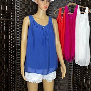 WOMEN SILK TOP SIZE S/M FOR SALE : PINK , BLUE , WHITE CHOICE COLOR PRICE IS FOR ONE TOP MESSEGE WHICH COLOR YOU BUY