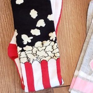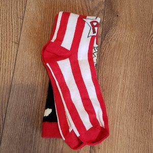 * WOMEN SOCKS. NEW ,NEVER USED /no tag. * WITH DESINNS * SIZE M. *COLOR RED WHITE