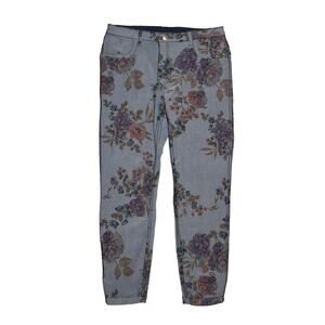 WOMEN WITH CONTROL NEW $64 Reversible Slim Ankle Jean Dark Indigo Floral 2P