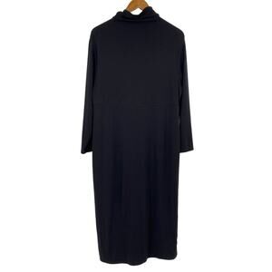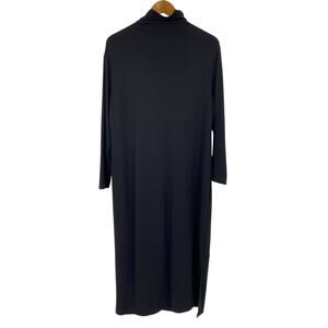 WOMEN WITH CONTROL NWOT Finespun Jersey Tummy Control Midi Dress in Black Size Large Lined Mock Neck Side Slit