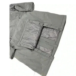 New with tag 3M Thinsulate insulation heavy coat. Thick material to keep you warm. Has faux fur around hood. very durable. Has clasp buttons on the back bottom for a little wiggle room. Zips up and is also button down. size is 34/36 4X. has zipper pocket on left side of chest area.