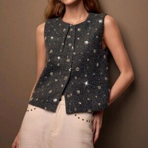 WOMEN WOOL BUTTON FRONT SEQUIN TANK TOP