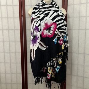 WOMEN HUGE MULTICOLORED SCARF WRAP COVER UP SIZE 27in LENGTH X ACROSS 42in