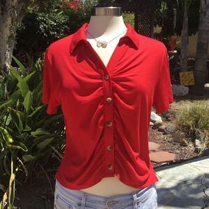 WOMEN RED BLOUSE SIZE XXL TOP T-SHIRT CROP TOP