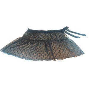 Beautiful lightweight sheer black bathing suit cover wrap skirt with side tie. Size 3 extra-large. Very flattering and feminine. Approx. 36" wide and 16" long.