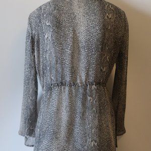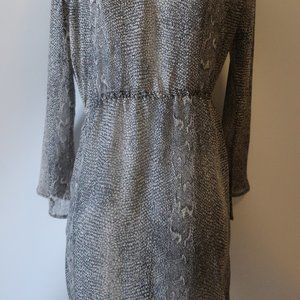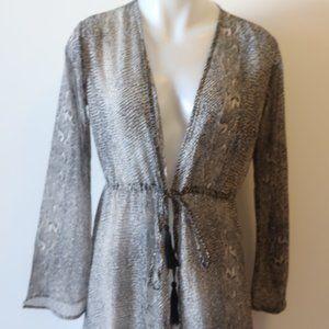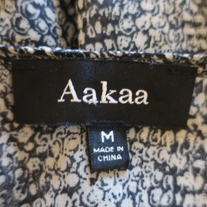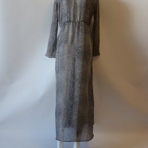 WOMENS AAKAA BLACK WHIT PRINT DESIGN SEMI-SHEER MAXI WRAP DRESS M *