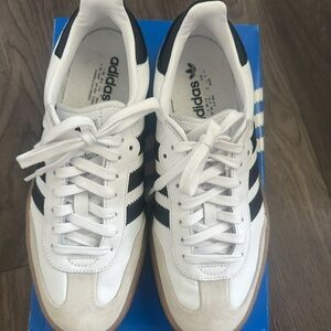 WOMENS ADIDAS SAMBAE - SIZE 10.5 - WHITE, BLACK, GUM BOTTOM - EXCELLENT