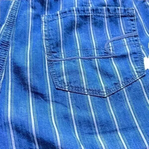 WOMEN’S AMERICAN EAGLE•DENIM (SOFT COTTON FABRIC) STRIPED TIE FRONT HIGH RISE PAPER BAG SHORTS•SIZE 8•WOULD GO GREAT WITH FITTED OR CROP TOP•