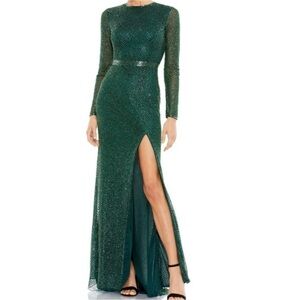 This stunning green evening gown is perfect for any formal occasion. Its elegant design and rich color make it a standout choice.