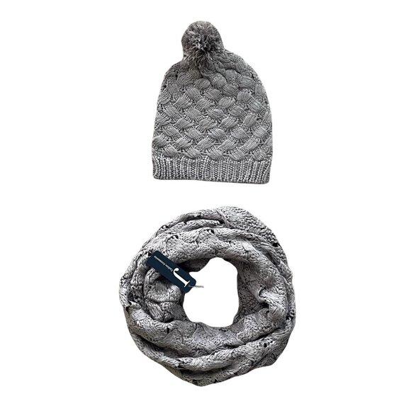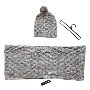 WOMENS BEIGE/COFFEE WEIGHT KNITTED BEANIE & INFINITY SCARF SET - SZ: OS