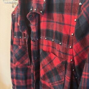 Women's BKE Blue/Red Plaid Cotton Button-Up Shirt