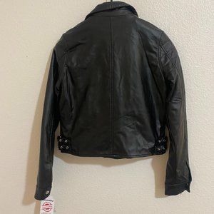 WOMEN'S BLACK FAUX LEATHER MOTO JACKET