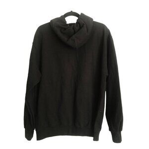 WOMENS BLACK FRONT GRAPHIC PULLOVER LONG SLEEVE HOODIE SWEATER SIZE LARGE