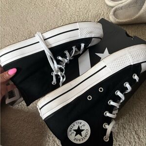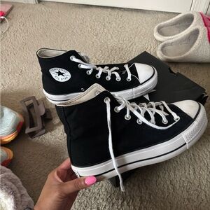 these are women's US size 9. these are in great condition, about 2 years old but they have only been worn a handful of times. there are very very light scuffs on the toe that are barely visible, but the black cloth part of the shoes are spotless and perfectly clean. im only getting rid of these because i have only worn them once in the past year, and i think someone else would love to have these. send offers, they're basically new and come in the box! i just want them gone!!!