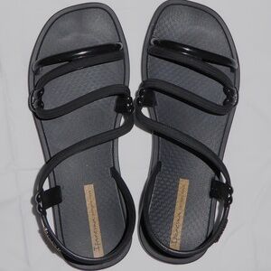 WOMENS BLACK SOLAR SANDALS IPANEMA STRAPPY FLAT RUBBER CASUAL BEACH 8