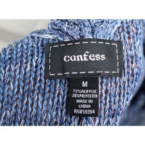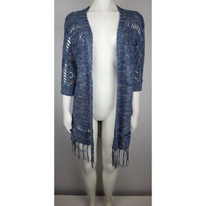 WOMEN'S BLUE 3/4 SLEEVE FRINGE CARDIGAN SWEATER - CONFESS - SIZE M
