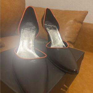 The product is a pair of stylish Bruno Bordese high heels in black, featuring a pointed toe and slip-on closure for easy wear. Made in Italy with leather upper and lining, these size US 5, EUR 39 1/2 heels have a stiletto heel measuring 3-3.9 inches, making them suitable for various occasions such as parties, formal events, and business meetings. With arch support and a lightweight design, these pump-style heels are perfect for year-round wear and add a touch of elegance to any outfit.