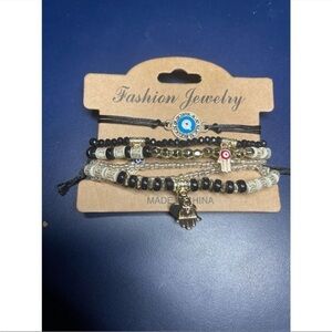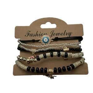 WOMEN'S Beaded Multilayer Bracelet Set Boho Hamsa Evil Eye Bracelet Black